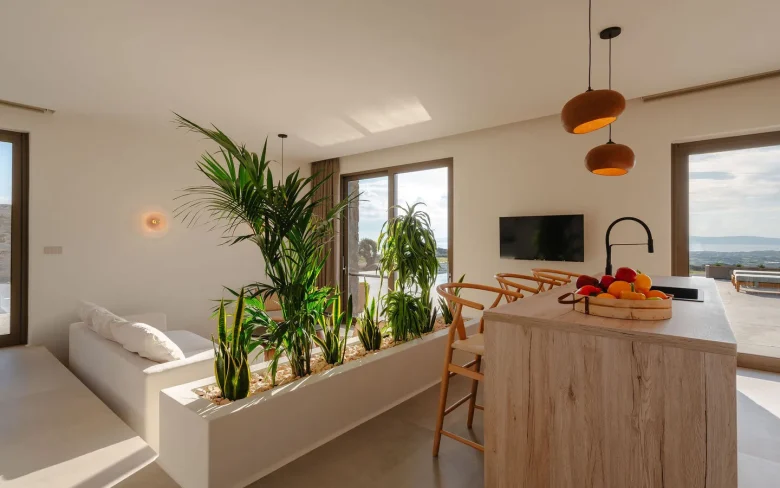 Villa 2 at Theros Villas Naxos is a 150 sqm private sanctuary blending Cycladic elegance with smart-home features, offering style, comfort, and immersive island living. With thoughtful layouts, three en-suite bedrooms, and intuitive controls, this villa provides the perfect balance of convenience and serenity.